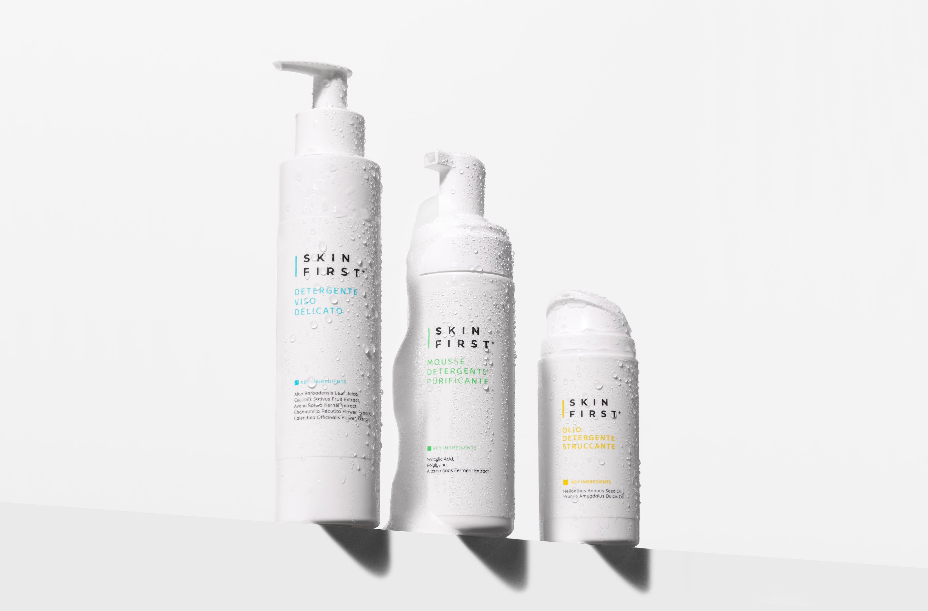 • Latte detergente: è un fluido cremoso che rispetta lo strato protettivo della pelle, grazie ad ingredienti lenitivi ed emollienti.