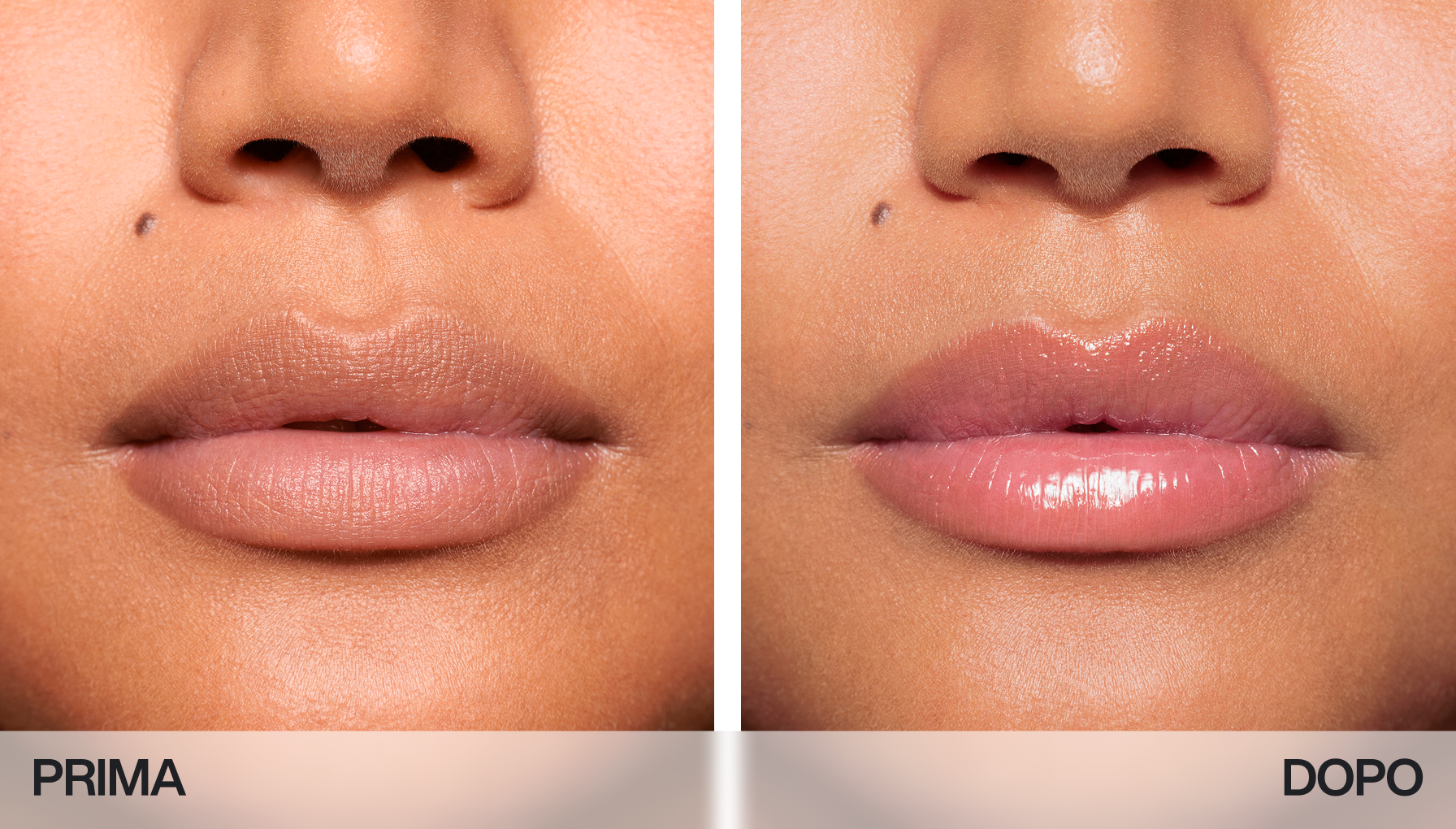 Balsamo formulato per labbra morbide, più piene e con un effetto glossy.
